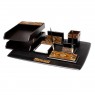 Комплектация: 1.лоток для бумаги формата А4; 2.подставка для 2-х ручек(ручки в комплекте); 3.подставка для газет; 4.лоток для заметок; 5.стакан для ручек; 6.коврик(бювар); 7. подставка для визиток