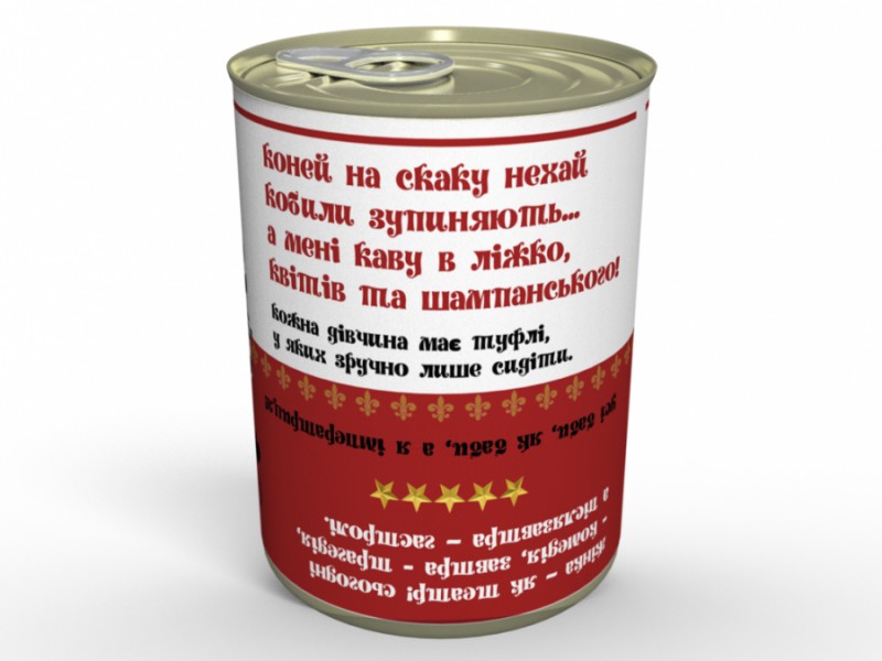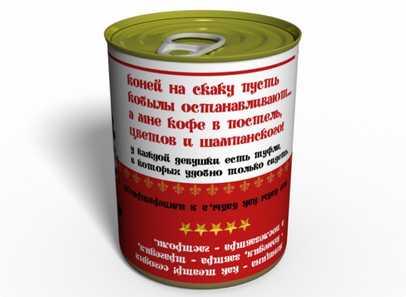 Практически у всех людей планеты Земля есть подруга/девушка, которая будет рада оригинальному подарку с юмором. А если она еще ходит в караоке да любит петь песню "Шальная Императрица", то для нее есть как раз такой подарок - Консервированные Носочки Шальной Императрицы. Продуйте свою Императрицу таим подарком!