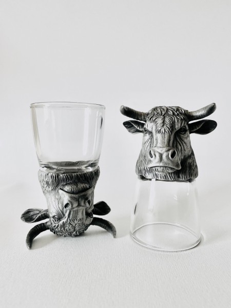 Рюмки-ритоны с металлическими головами быков - идеальный тематический новогодний подарок и для мужчин, и для семьи. Станут талисманами для привлечения в дом богатства, мужской силы и надежности!