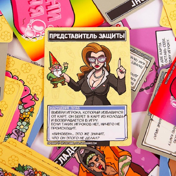 - Есть несколько карт (например, «Адвокатесса»), целью которых можно выбрать игрока в «чистой зоне»;