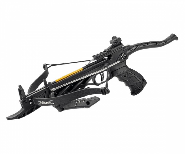 Арбалет Man Kung TCS Alligator – новинка, которая вобрала в себя опыт предыдущих образцов и привнесла новые оригинальные решения. Агрессивный дизайн в сочетании с расширенными возможностями качественно выделяет эту модель среди прочих пистолетных арбалетов. Изменения коснулись большинства узлов изделия, и теперь о каждом по-порядку: - Удлинена направляющая, что увеличивает дистанцию разгона стрелы и ее стабильность, кроме того, для стрельбы могут использоваться более длинные стрелы. - Арбалет получил автоматический предохранитель, который практически полностью исключает случайный выстрел. При взводе арбалета тетива вместе с рычагом взведения ставят предохранитель в безопасное положение. Для произведения выстрела необходимо будет снять арбалет с предохранителя. - Рукоять стала более ухватистой. - Мушка стала меньше, что позитивно сказалось на процессе прицеливания. - Модель обзавелась двумя планками Weaver (сверху и снизу) для установки прицельных приспособлений, а также прочих аксессуаров, вроде рукояти. - Прицел стал более надежным и простым в регулировке. - Общий дизайн арбалета стал более современным.