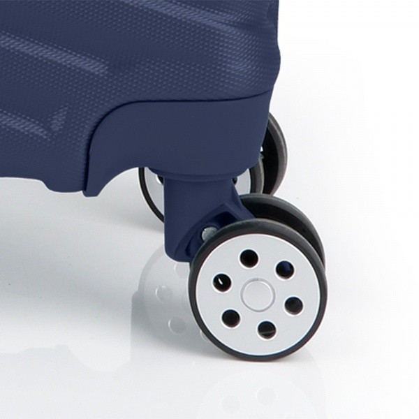 Модель оснащена четырьмя полноповоротными, спаренными колесами с возможностью независимого разворота каждого колеса на 360°. Системой предусмотрено равномерное перераспределения нагрузки на каждое колесо, что в свою очередь способствует плавному качению и маневренности чемодана, прилагая при этом минимум усилий.