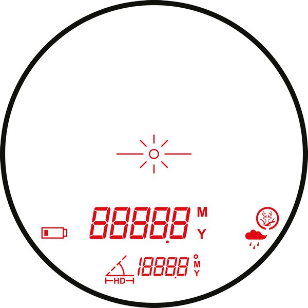 - HUNT - для измерения реальной дистанции до объекта в пространстве во время охоты, без учета уклона. Игнорирование интерференции, возникающей при прохождении лазерного луча через траву и мелкие кусты. Этот режим полезен для замера дистанции до достаточно крупных целей, как к примеру олень, перемещающийся среди кустов, деревьев и травы. В этом режиме отображается пиктограмма оленя в кружке.