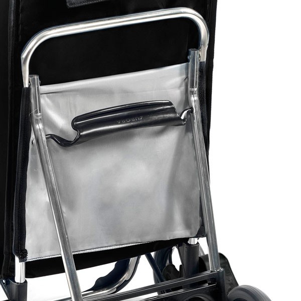 - Рама каркаса тележки на 100% состоит из легкого алюминиевого сплава ALU 6060 T6 (Al - Mg - Si с применением упрочняющего режима закалки T6). По своему составу и характеристикам он близок к авиационному сплаву алюминия, однако более пластичный при обработке, что позволяет без особых усилий достичь необходимой формы изделия. Применение алюминиевого сплава позволяет сделать сумку-тележку достаточно легкой, прочной и практичной в применении.