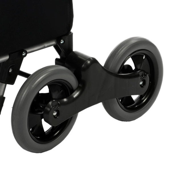 - Шасси сумки-тележки оснащено четырьмя колесами по два колеса в каждом блоке, что добавляет устойчивости и маневренности модели.
