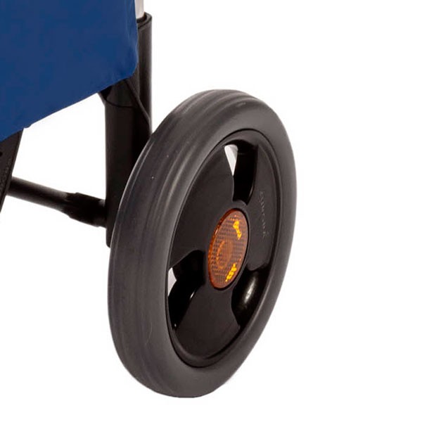 - Колеса сумки-тележки оснащены рефлектором, отражающим свет и позволяющим идентифицировать автомобилистам владельца сумки в вечернее время суток.