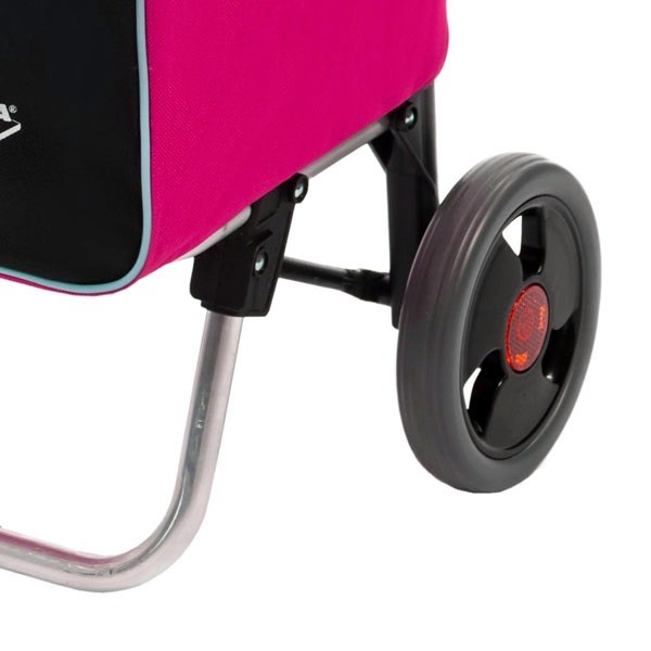 - Колеса сумки-тележки оснащены рефлектором, отражающим свет и позволяющим идентифицировать автомобилистам владельца сумки в вечернее время суток.