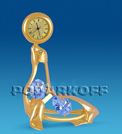 Фигурка с часами в виде морского котика, изделие выполнено из метала покрытого золотом в 24 к. и украшена хрусталиками "Swarovski"