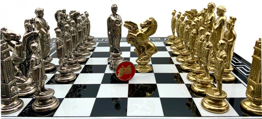 Шахматы всемирно известного итальянского бренда Italfama. Доска изготовлена из дерева. Размеры доски: 50 x 50 x 2 cm, размер квадрата: 4,5 cm. Фигурки коллекции "Cesare" изготовлены из латуни и никелевого покрытия.