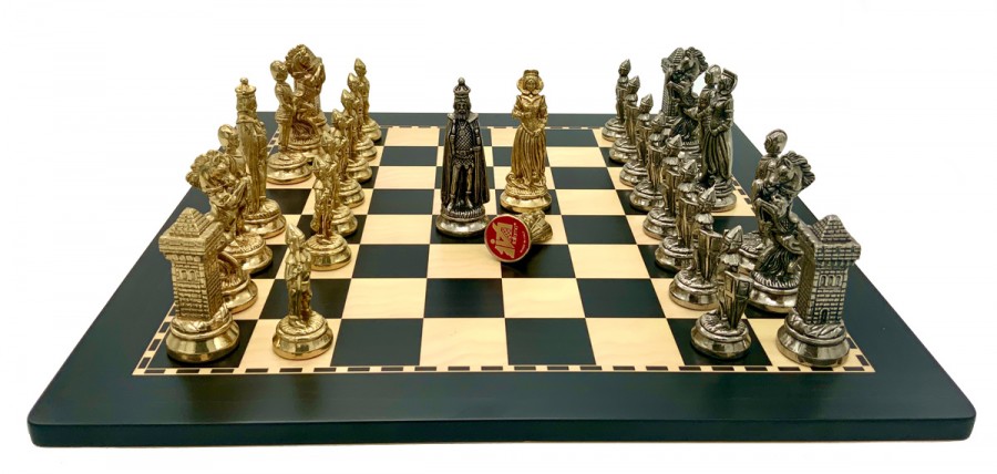Шахматы всемирно известного итальянского бренда Italfama. Доска изготовлена из дерева. Размеры доски: 40 x 40 x 1,2 cm, размер квадрата: 4,0 cm. Фигурки коллекции "Maria Stuarda" изготовлены из цинка, латуни, никеля.