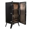 Универсальная коптильня может использоваться как для холодного так и для горячего копчения. Внешняя часть корпуса изготовлена из листовой стали и покрыта порошковой жаростойкой краской. Внутри коптильня обшита пищевой нержавейкой. Между стенками для утепления уложена минеральная вата, благодаря этому наружная часть коптильного шкафа практически не нагревается.