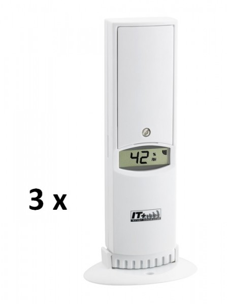• В комплект входит 3 беспроводных передатчика для измерения температуры и влажности.