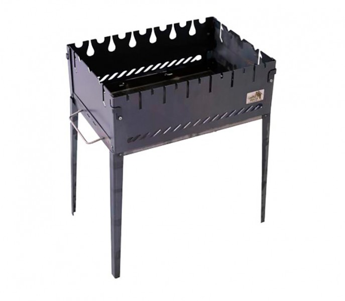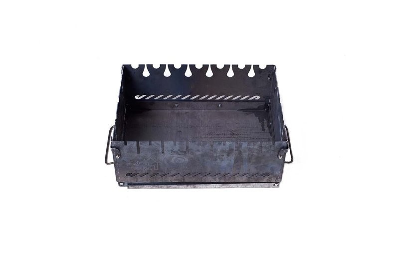 Раскладной мангал вместимостью в 6 шампуров из черной стали. Толщина стенок – 2 мм, что не утяжеляет конструкцию. Изготовлен при помощи лазерной резки на высокоточном оборудовании.