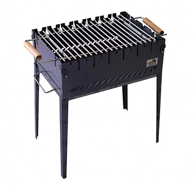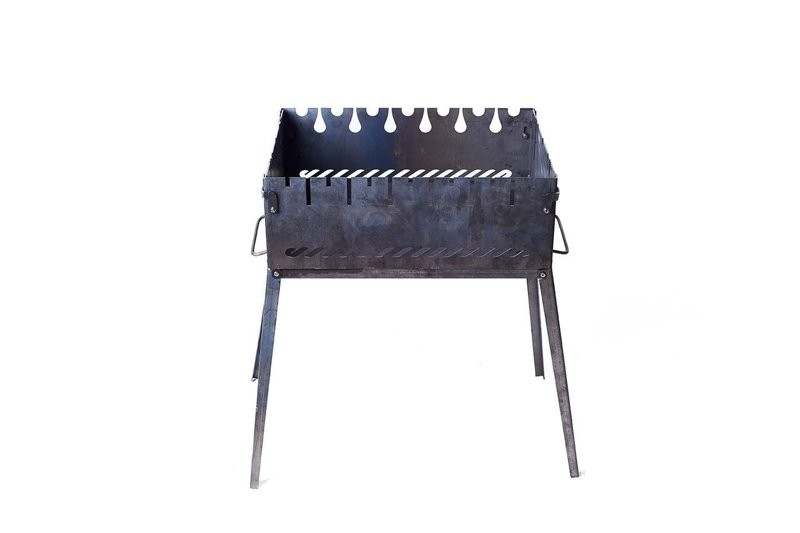 Раскладной мангал вместимостью в 6 шампуров из черной стали. Толщина стенок – 2 мм, что не утяжеляет конструкцию. Изготовлен при помощи лазерной резки на высокоточном оборудовании.
