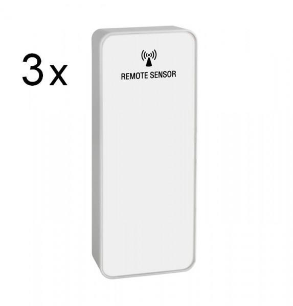 В комплекте 3 беспроводных внешних датчика для контроля температуры и влажности воздуха в 4-х помещениях в общей сложности