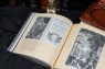 Для барельефа выбрано конгревное тиснение на коже, а некоторые элементы оттиснены с применением золотой фольги. Применена ручная тонировка кожи.