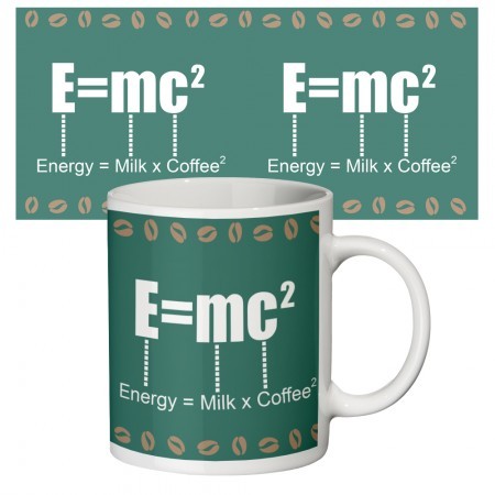 Чашка с принтом Energy – оригинальная чашка для кофе в подарок любителям эквивалентности энергии и массы. Вы сполна насладитесь любимым напитком благодаря объему чашки в 350мл. Все знают формулу E=mc2 (Energy = Milk x Coffee2), и все слышали, что ее Эйнштейн придумал когда пил кофе с молоком! Её смело вручить настоящему ботану. Купить прикольную чашку можно как отличный подарок ребенку, или подарить лучшему другу или родному брату.