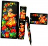 Эксклюзивный набор в уникальной подарочной упаковке на магнитах с бархатным ложементом внутри включает в себя: недатированный ежедневник ручной работы на кремовой бумаге изготовленный по старинной европейской технологии XVIII века из переплетной кожи натурального дубления (кожа сорта Fiorra, Италия) декорированный глубоким блинтовым тиснением с золотым, серебряным или рисованным обрезом, металлическую ручку в футляре (производство Польша), Power Bank емкостью 20000mAh и флеш-карту Transcend емкостью 16,32,64Gb в виде кредитной карты. Ручка, футляр, Power Bank и флеш – карта расписаны мастерами подлаковой росписи международного класса (ручная работа). Каждый элемент данного сувенира это произведение технического и художественного искусства.