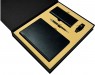 Ежедневник формат А5, размеры: 145х205 мм, натуральная кожа, обрез: золото, серебро, рисованный. Металлическая ручка премиум – класса производство Германия 149x30x21 мм, цвет чернил: синий. Power Bank емкость 20000mAh, тип батареи литий – ионный, размеры: 158×77×21 мм. Мicro USB-кабель. USB – флеш – карта Transcend 16,32,64,128,256,512Gb. Подарочная коробка из переплетного картона декорированная дизайнерским картоном на магнитах и флокированым полимерным ложементом (бархатное покрытие разных цветов) размеры: 366х280х40 мм. По желанию заказчика разрабатываем индивидуальный дизайн данного набора, коробка может быть из натурального дерева, флеш-карта более премиального типа например биометрическая (по отпечатку пальца), ручка по вашему пожеланию, ежедневник по индивидуальному дизайну из любого типа кожи (крокодил, питон и т.д.)