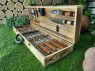 В наборе 8 шампуров, фляга из нержавеющей стали, вилка для снятия мяса, нож мясника Tramontina, 4 рюмки, барный нож, двойной шампур для стейка, ребрышек и курицы, зажигалка газовая.