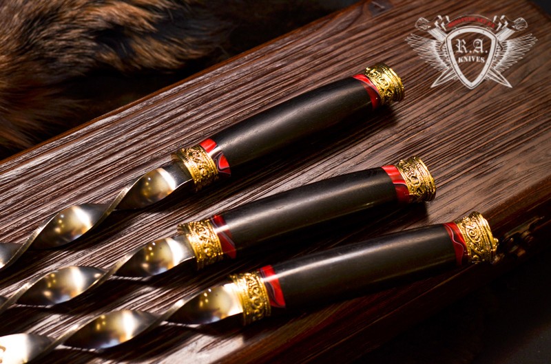 Предлагаем Вашему вниманию комплект шампуров Лоза, где ручная работа и эксклюзивный дизайн демонстрируют благородный вкус обладателя.
