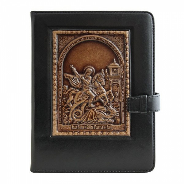 Кожаный ежедневник Георгий Победоносец черный