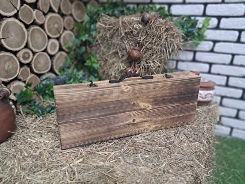 Ящик-кейс для хранения и перевозки шампуров из натурального дерева (650х260х100), материал: обожженная сосна.