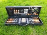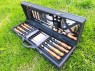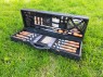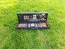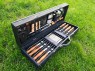 Комплексный набор в который входит все для приготовления шашлыка : 8 шампуров, нож туристический, топорик туристический, двойной шампур для курицы, стейка и ребрышек, вилка для снятия мяса, барный нож, набор рюмок, фляга, зажигалка газовая, 4 тарелки, 4 вилки, 4 ножа для стейка, набор для специй.