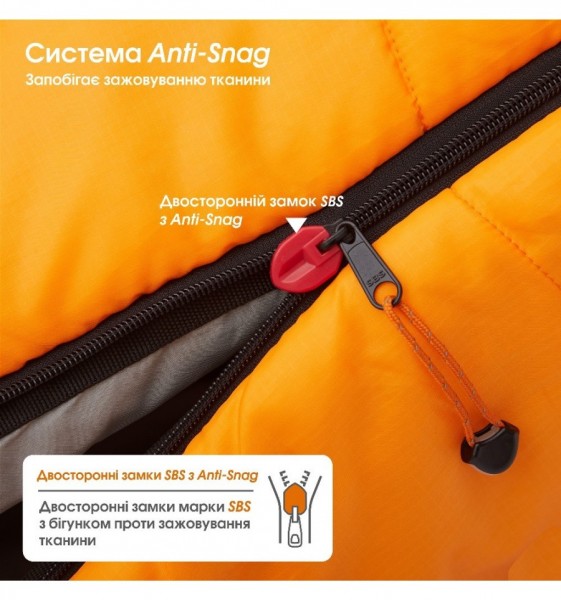 Високоякісні двосторонні замки SBS із системою проти зажовування тканини Anti-Snag (червоний бігунок Anti-Snag + додаткова тасьма проти зажовування під замком)