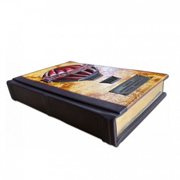 Оформление: объёмная 3D накладка из кожи с фотопечатью в виде воздушного шара, деревянные художественные вставки