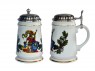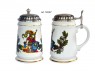 Кружка белого цвета из лакированной керамики, с закрывающейся оловянной крышкой.Спереди способом печати нанесен рисунок ПОЖАРНОГО в виде рыцаря, который тушит пожар. По-немецки, рыцарь - ФАЕРМЭН (Der Feuerwehrmann)!