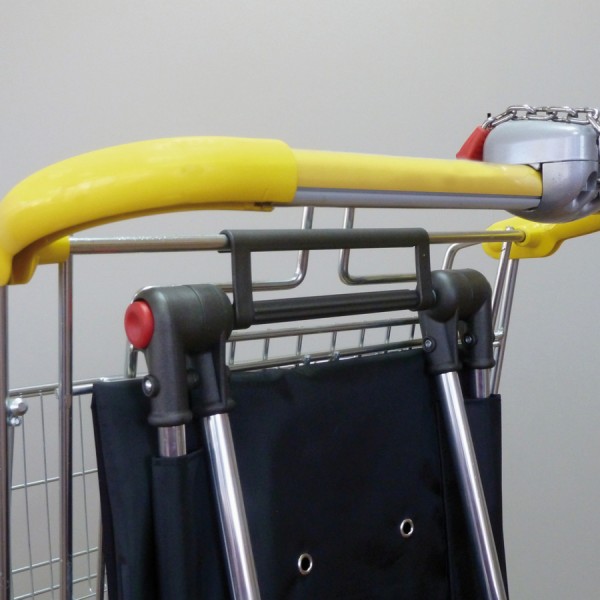 Специальное приспособление, позволяющее навесить сумку-тележку на тележку супермаркета.