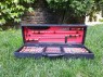 В наборе 8 шампуров + двойной шампур для курицы, стейка и ребер + двойной шампур для грибов и овощей + кочерга + нож-вилка для снятия мяса