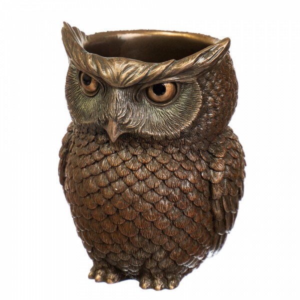 Сова является символом мудрости и тяги к знаниям, интеллекта, хранительницей счастья в семье, она охраняет от неразумных действий и денежных потерь. Такой держатель для ручек, несомненно, украсит интерьер любого дома и станет отличным подарком на выпускной в школе или университете, преподавателю в знак благодарности за полученные знания или человеку, который имеет особые интеллектуальные способности в знак признательности. Статуэтка изготовлена из полистоуна (искусственного камня) и покрыта бронзовым напылением. Упакована в красивую подарочную упаковку. Так что, покупая эту статуэтку вы покупаете ценный и красивый подарок, не требующий дополнения.