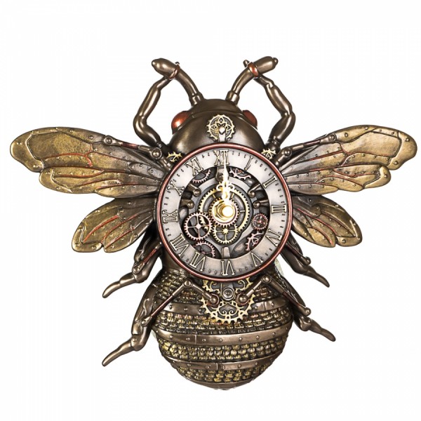 Дизайнерская команда Veronese порадовала коллекционеров новой серией статуэток в стилистике "Стимпанк". Гениальный стиль, пропитанный духом индустриализации и технической революции, основан на механических деталях, шестерёнках, пружинках и паровых машинах. Пчела порадует любителей фэнтези своим футуристичным видом и функциональностью с настоящим часовым механизмом. Фигурка изготовлена из полистоуна (искусственного камня), покрытого бронзой.