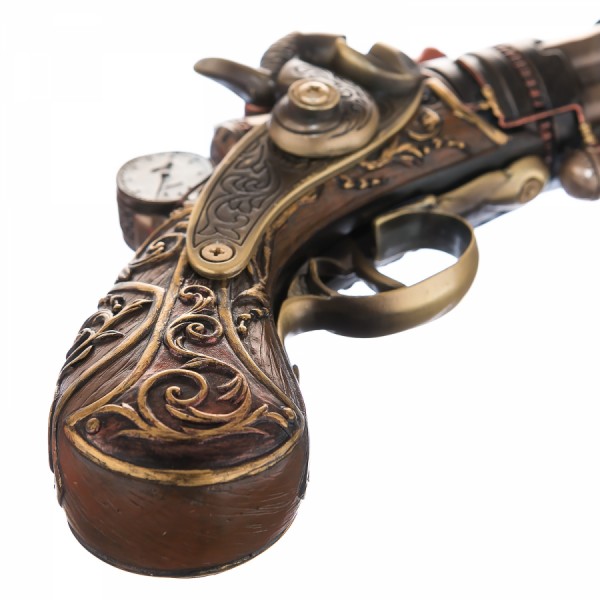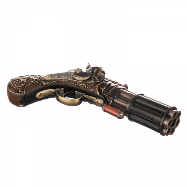 Статуэтка "Пистолет" выполнена в стиле симпатик от известного бренда Veronese, станет оригинальным акцентом в интерьере и задаст неповторимую атмосферу. Статуэтка с детальной проработкой деталей никого не оставит равнодушным и станет отличным подарком любителям необычных, оригинальных вещей. Понравиться тем, кто увлекается современным искусством. Статуэтка изготовлена из полистоуна (искусственного камня) и покрыта бронзовым напылением. Запакована в пенопласт и красивую подарочную упаковку.Размер 14*21 см