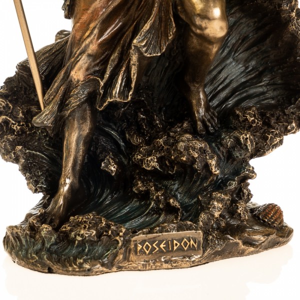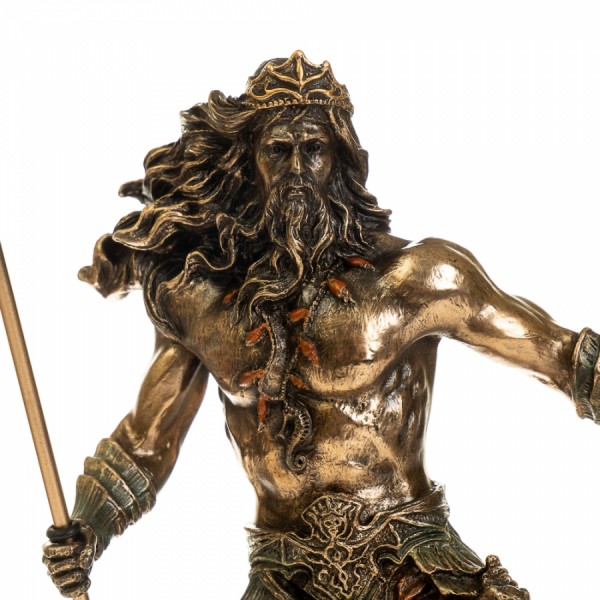 Статуэтка «Посейдон» олицетворяет собой повелителя водных стихий, морской торговли и рыбаков. Такой подарок оценят моряки, заядлые рыбаки и просто ценители прекрасного. Изделие изготовлено из полистоуна (искусственный камень), покрыто напылением из бронзы; и упаковано в подарочную коробку, что придает ему престижность и роскошь. Размер 14*11*21 см.