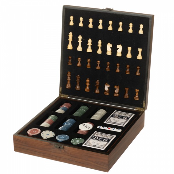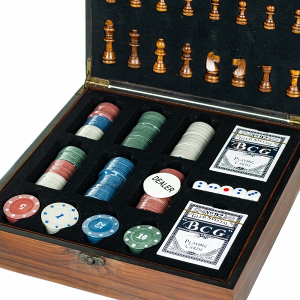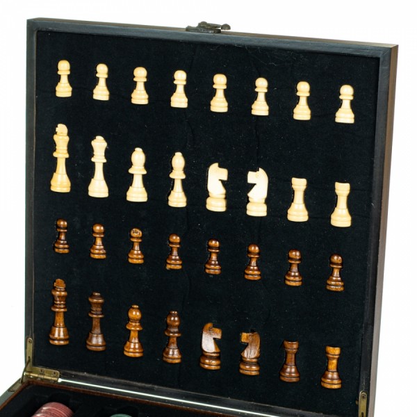 Оригинальный подарочный набор для любителей шахмат и покера. Комплект изготовлен из высококачественных материалов.