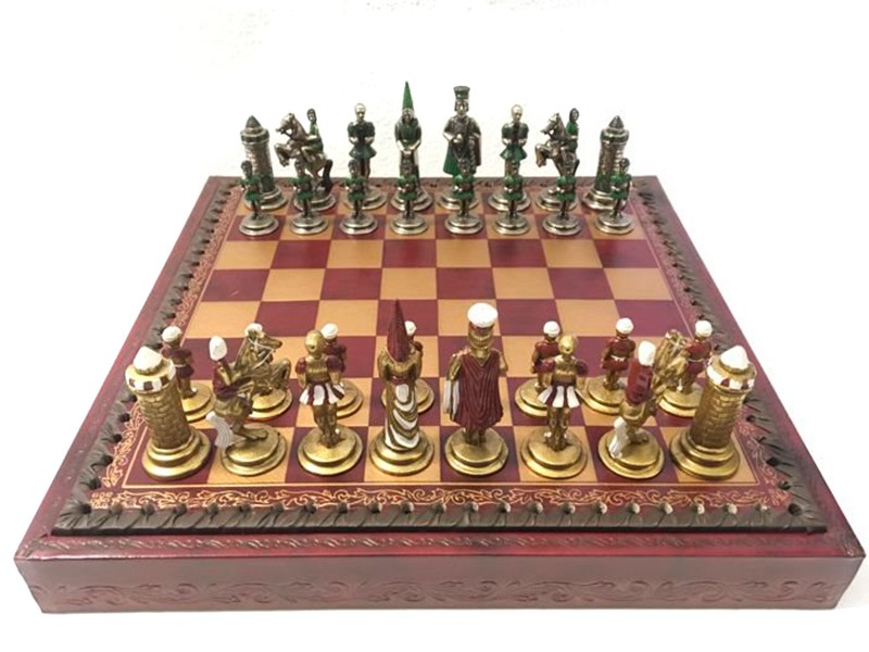 Шахматы и из камеди и сплава олова со свинцом, изображающие известные битвы и полководцев. Ручная роспись. Эта прекрасная коллекция шахматных наборов понравится как активным игрокам, так и коллекционерам, понравится ценителям богатого дизайна. Детали и необычная форма привлекают внимание. Характеристики: