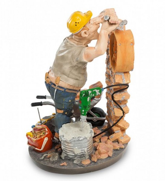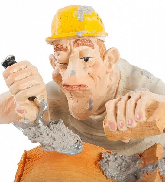 Фигурка строителя вполне заслуженно станет забавной наградой, она сможет удивить и обрадовать. Веселая статуэтка, бесспорно, окажется подарком самого высокого качества, так как изготовлена из современного материала полистоуна, по своим характеристикам намного превосходящего природный камень.