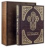 Складена палітурка «Брадель», ручної роботи, виконана з натуральної шкіри «Marma Rossa», виробництва італійської фабрики «Carisma». Обкладинка книги оздоблена рельєфним золотим тисненням, з використанням фольги «Luxor 240». Обріз вручну поліровано і позолочено.
