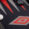 Игровое поле выполнено из черного дуба с вкраплениями из красного капа и серого клена. Греческая компания Manopoulos создает высококачественные настольные игры с 1972 года. Строгие требования к стилю, материалам и мастерству отражены во всех игровых наборах нард, которые ими разработаны. Manopoulos уважительно и с любовью относятся как к своей истории, так и к своим мифам, поэтому в шахматных наборах оживают их величественные боги, и их могучие герои. При этом используется самая передовая технология литья и металлизации и выбираются лучшие материалы.