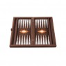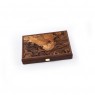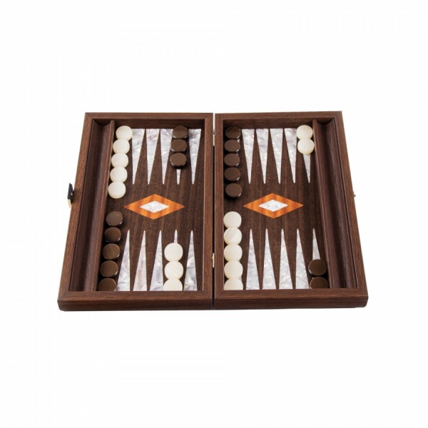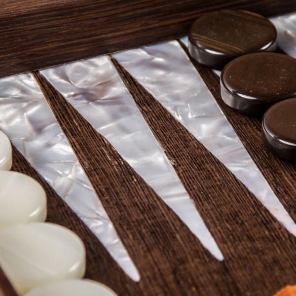 Игровое поле выполнено из черного дуба с вкраплениями из красного капа и серого клена. Греческая компания Manopoulos создает высококачественные настольные игры с 1972 года. Строгие требования к стилю, материалам и мастерству отражены во всех игровых наборах нард, которые ими разработаны. Manopoulos уважительно и с любовью относятся как к своей истории, так и к своим мифам, поэтому в шахматных наборах оживают их величественные боги, и их могучие герои. При этом используется самая передовая технология литья и металлизации и выбираются лучшие материалы.