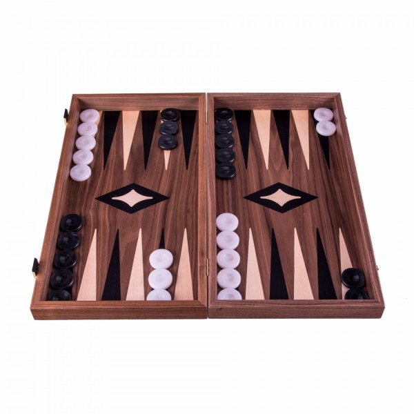 Игровое поле выполнено из черного дуба с вкраплениями из красного капа и серого клена. Греческая компания Manopoulos создает высококачественные настольные игры с 1972 года. Строгие требования к стилю, материалам и мастерству отражены во всех игровых наборах нард, которые ими разработаны. Manopoulos уважительно и с любовью относятся как к своей истории, так и к своим мифам, поэтому в шахматных наборах оживают их величественные боги, и их могучие герои. При этом используется самая передовая технология литья и металлизации и выбираются лучшие материалы.