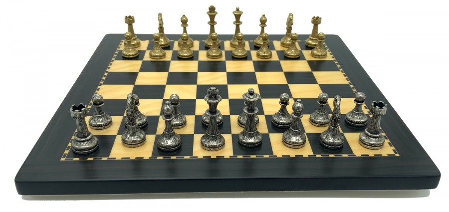 Шахматы всемирно известного итальянского бренда Italfama. Доска изготовлена из дерева. Размеры доски: 30 x 30 x 1,3 cm, размер квадрата: 3,0 cm. Фигурки коллекции Mignon Fiorito изготовлены из цинка, латуни, никеля. Размер короля: 4,8 cm - Ø base 1,9 cm.