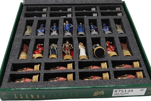 Опытные ремесленники-шахматисты из Флоренции, Италия создали эти просто потрясающие произведения в стиле артурской тематики, искусно изготовленные из смолы и расписанные вручную шахматные фигурки придают степень мастерства, которую нужно увидеть, чтобы поверить. Две армии короля Артура и злой Морганы сталкиваются друг с другом с поистине удивительным уровнем детализации.