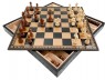 Шахматы всемирно известного итальянского бренда Italfama. Доска изготовлена из экокожи. Размеры доски: 48 x 48 x 5,5 cm, размер квадрата: 5,2 cm.Фигурки изготовлены из дерева. Размер короля: 9 cm, диаметр 3.0 см. В комплекте идут шашки, нарды.