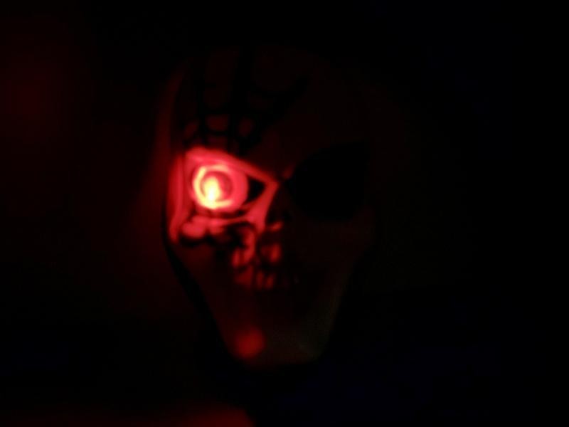 Маска на хеллоуин со светящимся глазом.  Материал пластик и ткань. Работает от батареек. Размеры 25*17 см