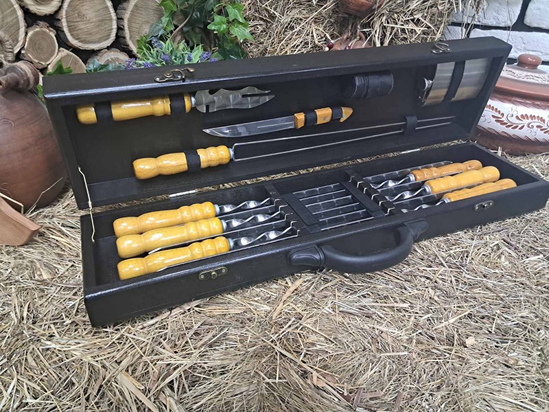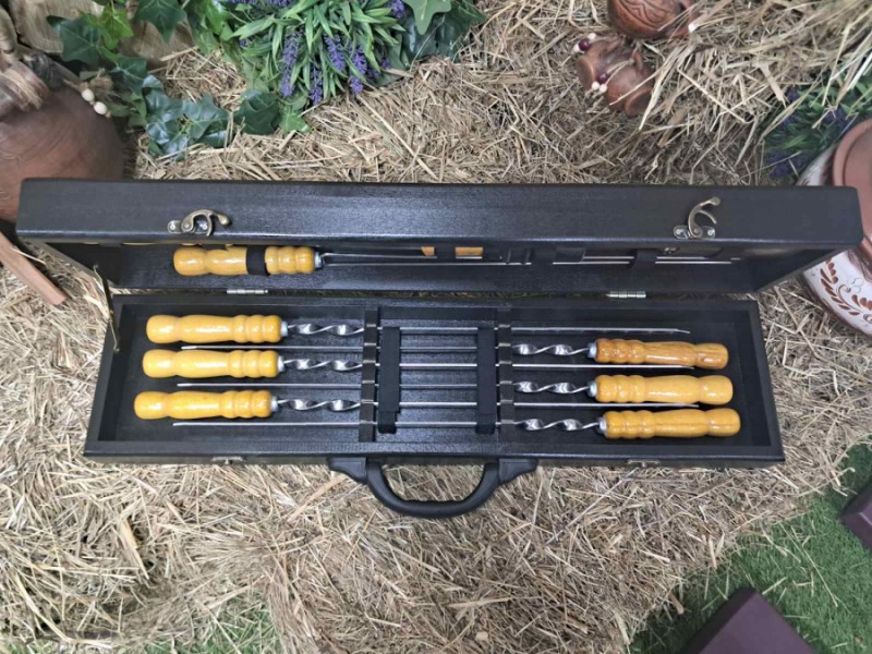 Комментарии к Набор из 6 шампуров для мяса (630х10х3 мм) + комплект аксессуаров в деревянном кейсе
