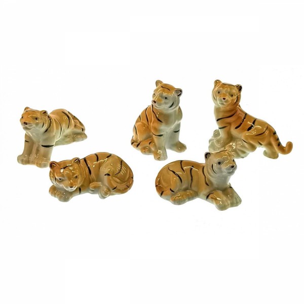 Набор фарфоровых тигров (5 шт). Размер 7*4*3 см.